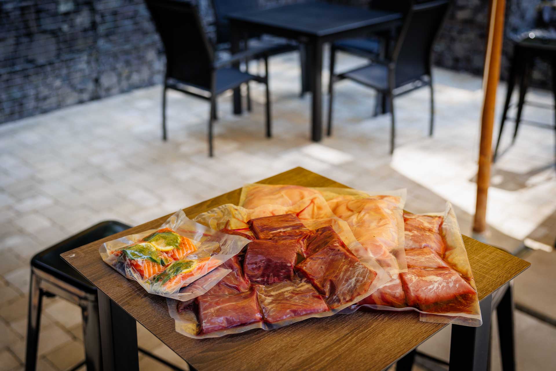 The barbecue package is prepared by chef Ivan Rusina. Vacuum-packed specialties of your choice — meat, marinades, side dishes — delivered directly to the property.