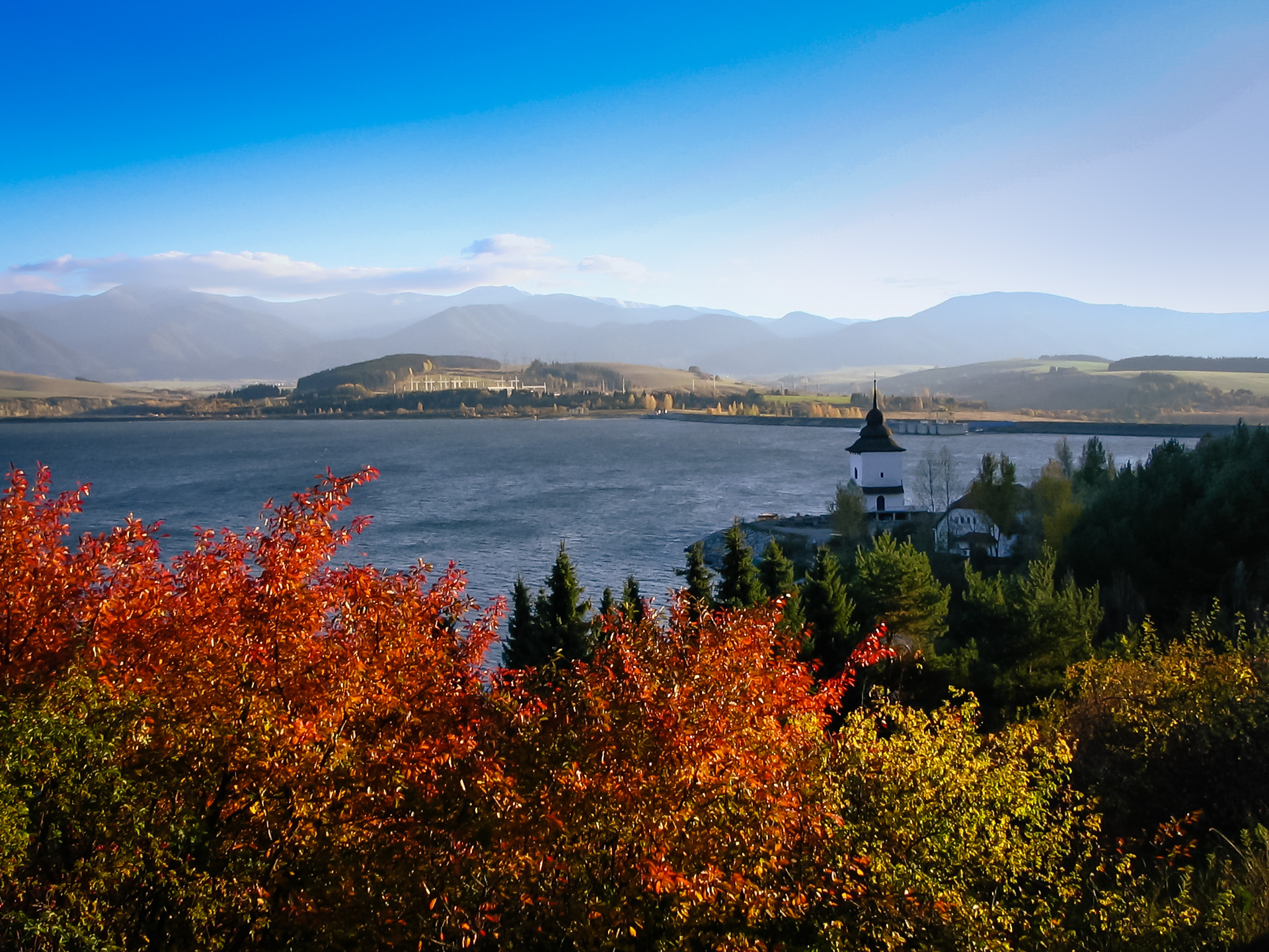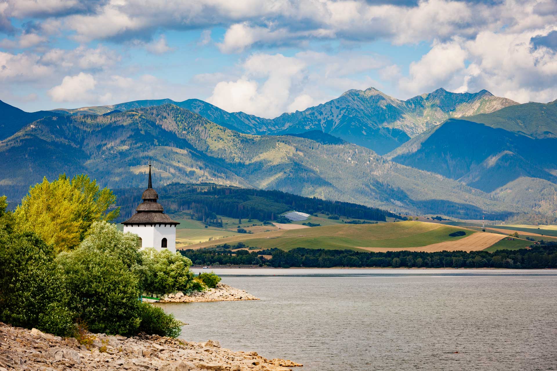 Liptovská Mara is the second largest dam in Slovakia. The dam wall is a popular spot for cyclists and skaters. Near the wall stands the tower of the original Church of Our Lady — a building that remained from one of the 13 villages flooded by the dam.