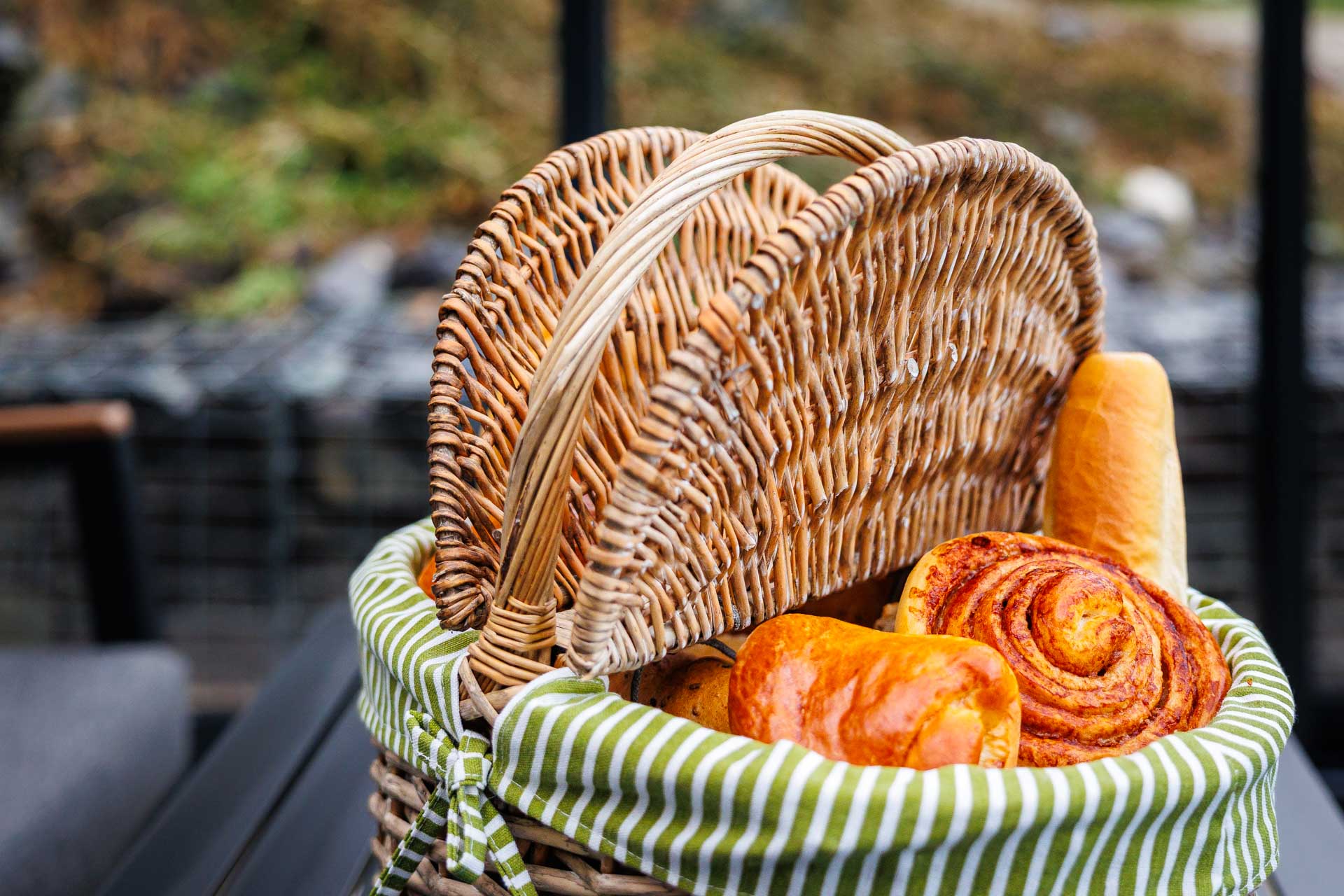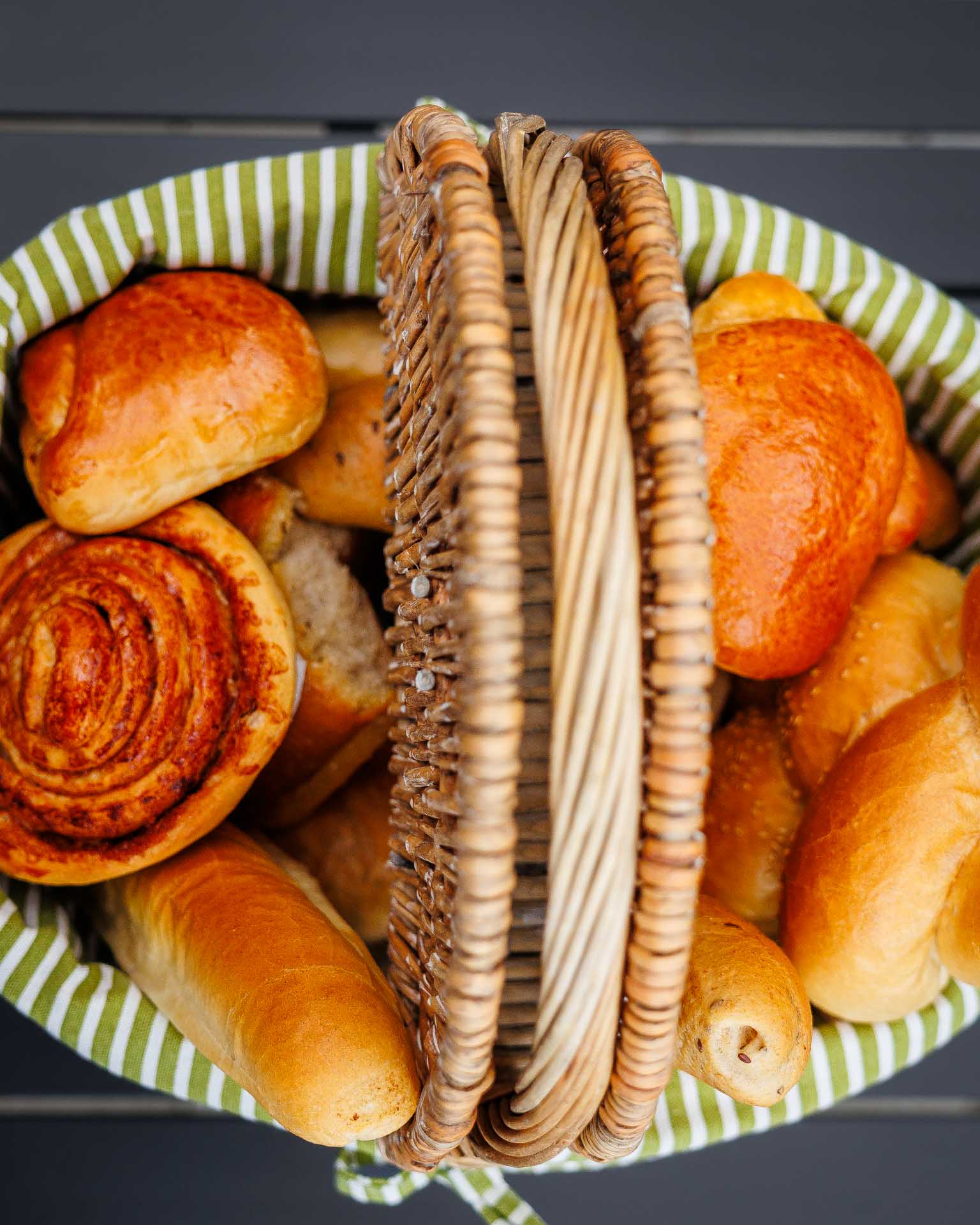 Basket of fresh baked goods from a local artisan bakery - Monday to Saturday. Price €20.
