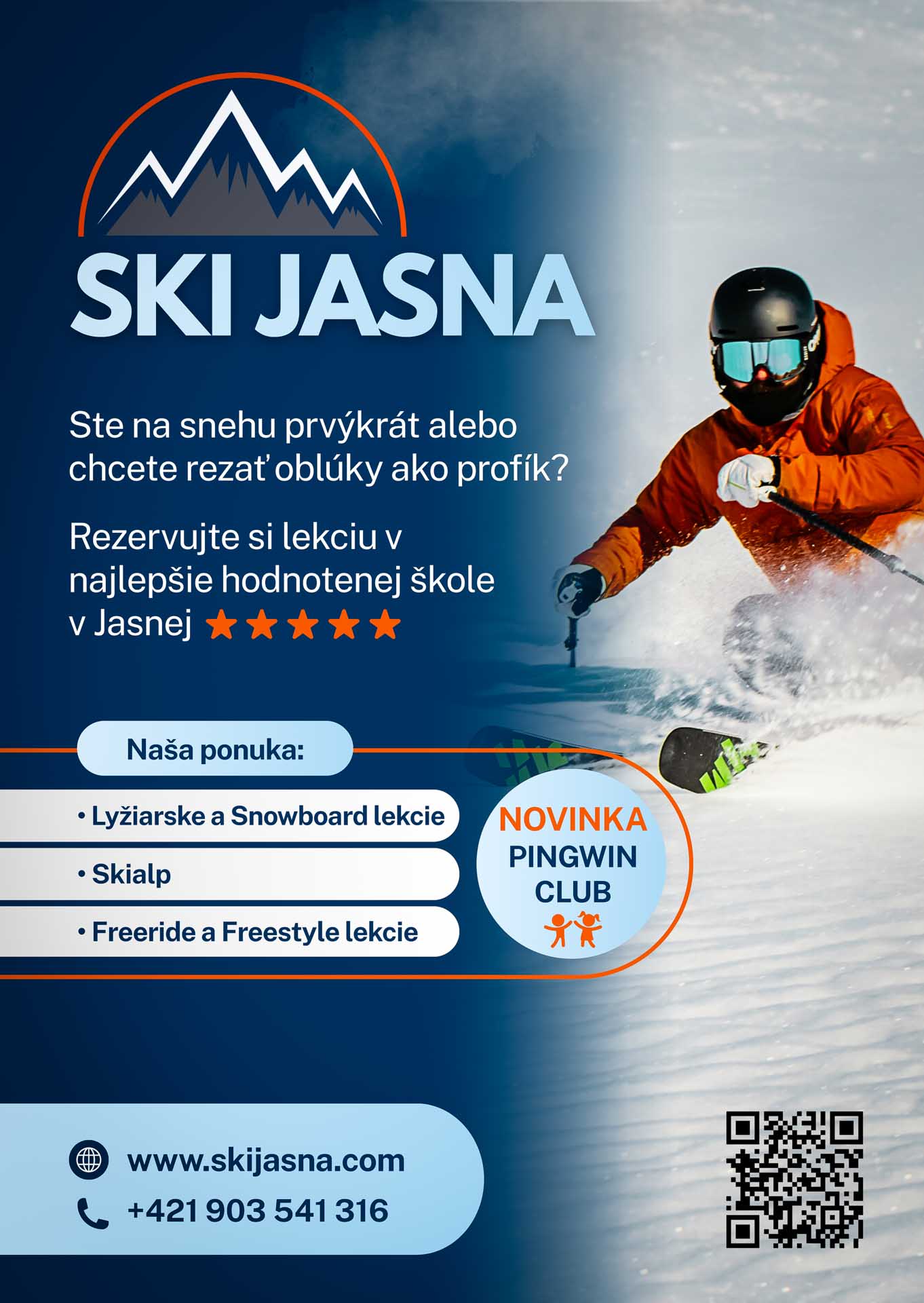 In collaboration with Ski Jasna ski school, which has been operating in the heart of Jasná for more than twenty years, we bring you a place where winter can be experienced to the fullest, with ease, safely and under the supervision of the best. It is no coincidence that this school is the best rated in Jasná. Its reputation is based on professionalism, patience and an individual approach that wins over families and experienced athletes. The school's instructors do not only teach technique. They teach you to perceive the snow, the rhythm of the slope and the joy of every curve. Whether it is the first timid steps of a beginner or fine-tuning the details of the ride of an advanced skier or snowboarder, they always pay attention to the safety and comfort of their clients. The offer includes skiing, snowboarding, freeride, freestyle and alpine skiing – disciplines that tell their own winter story in Jasná.