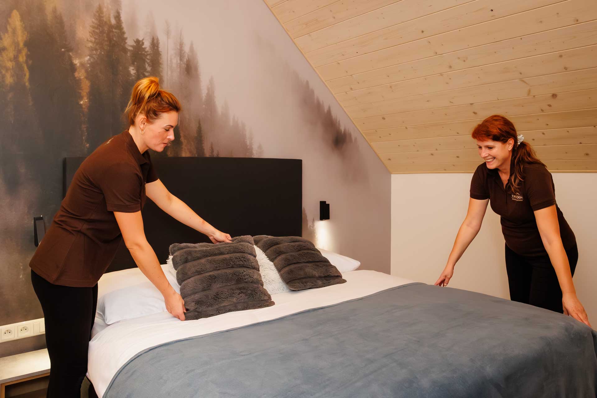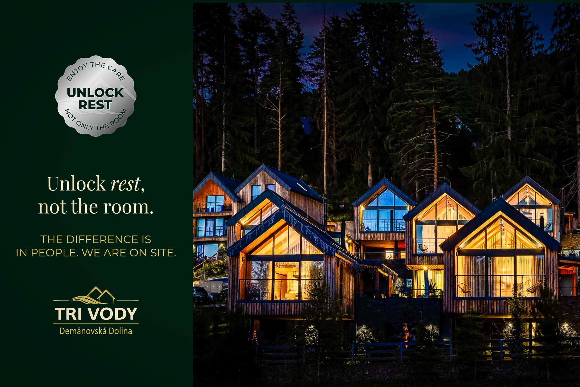 Most mountain accommodations today look good in photos. Modern interior, natural materials, forest view. Then you arrive and are greeted by a coded key box at the entrance. At the Tri Vody resort, we decided differently.