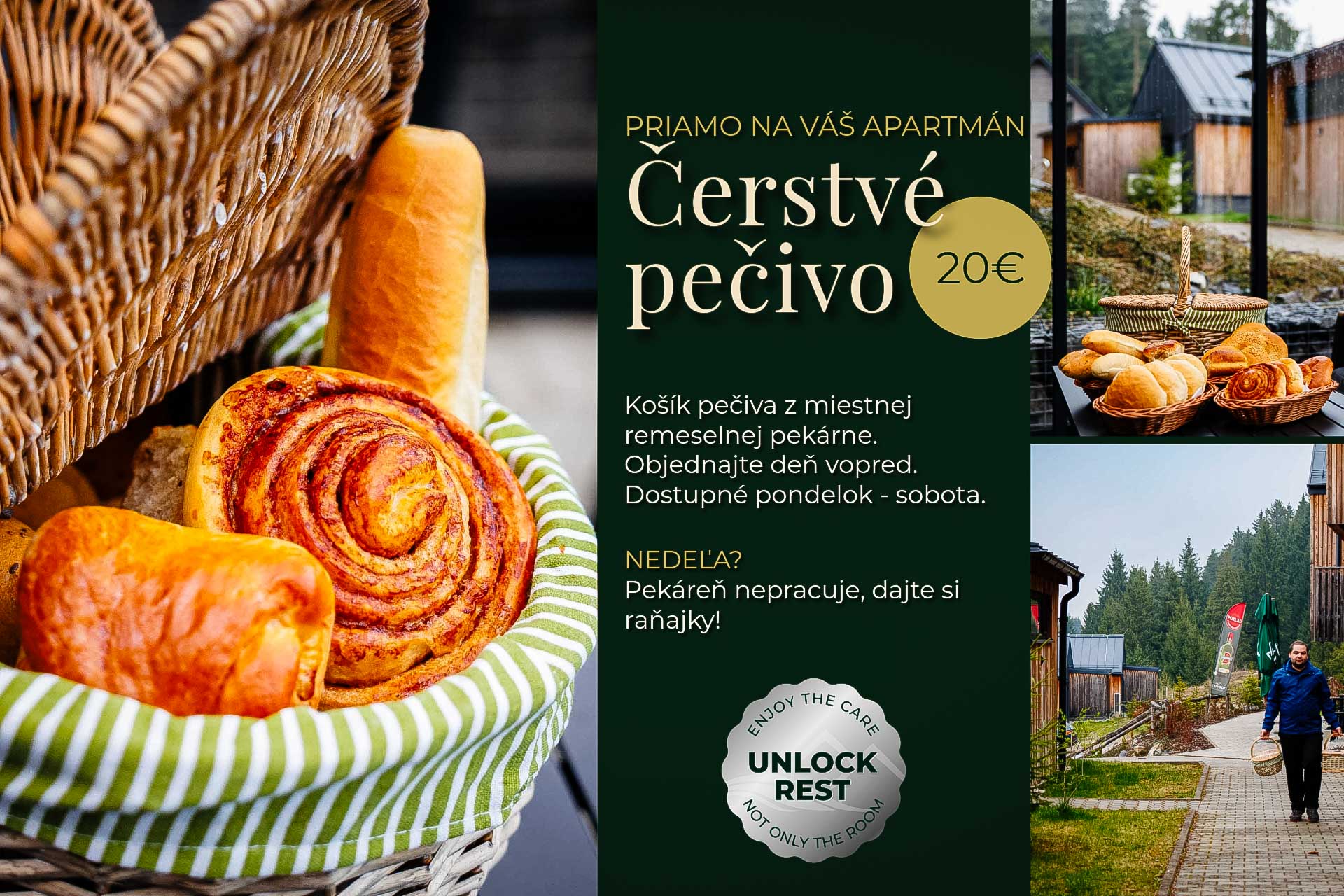 Nedeľa? Pekáreň nepracuje — v ten deň odporúčame objednať plné raňajky s donáškou.